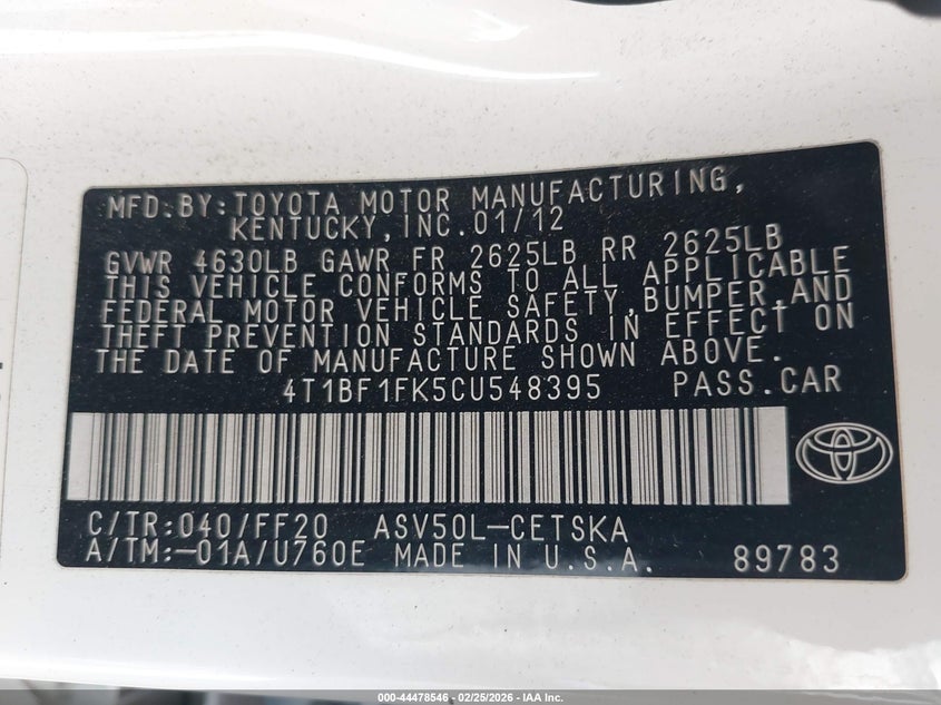 • 4T1BF1FK5CU548395