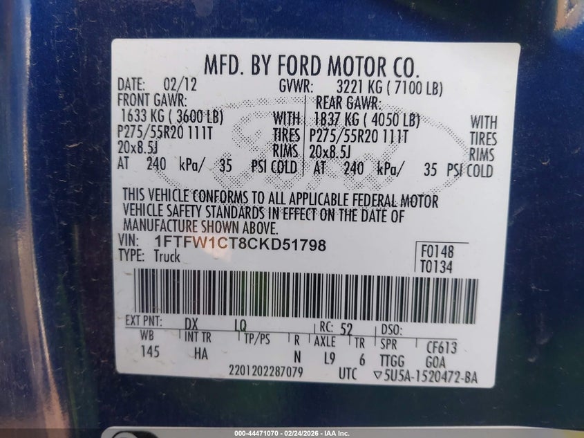 • 1FTFW1CT8CKD51798
