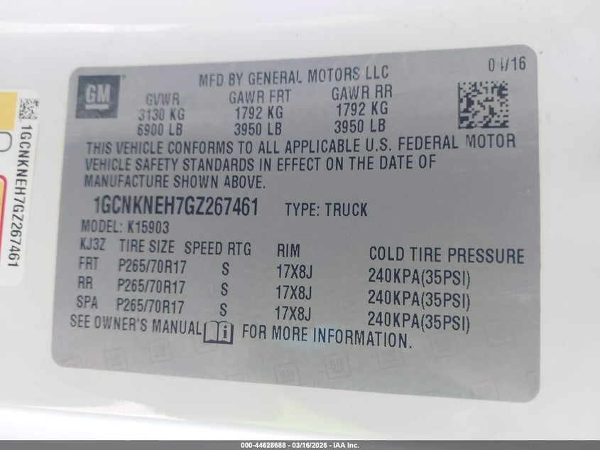• 1GCNKNEH7GZ267461