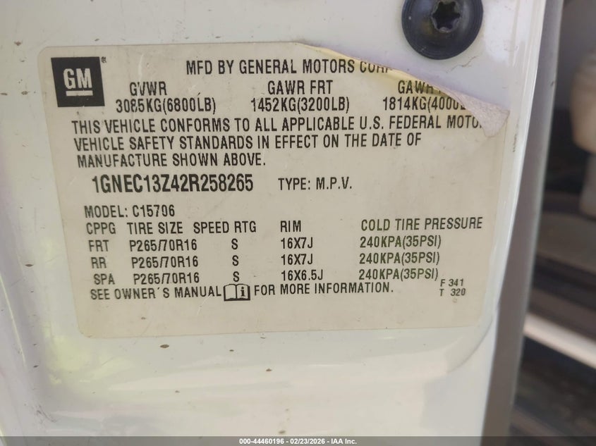 • 1GNEC13Z42R258265