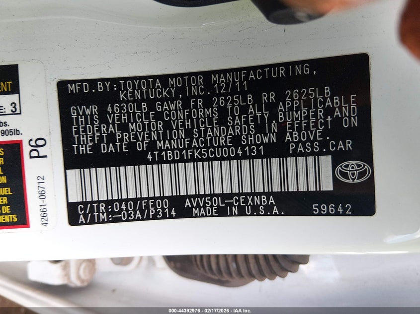 • 4T1BD1FK5CU004131