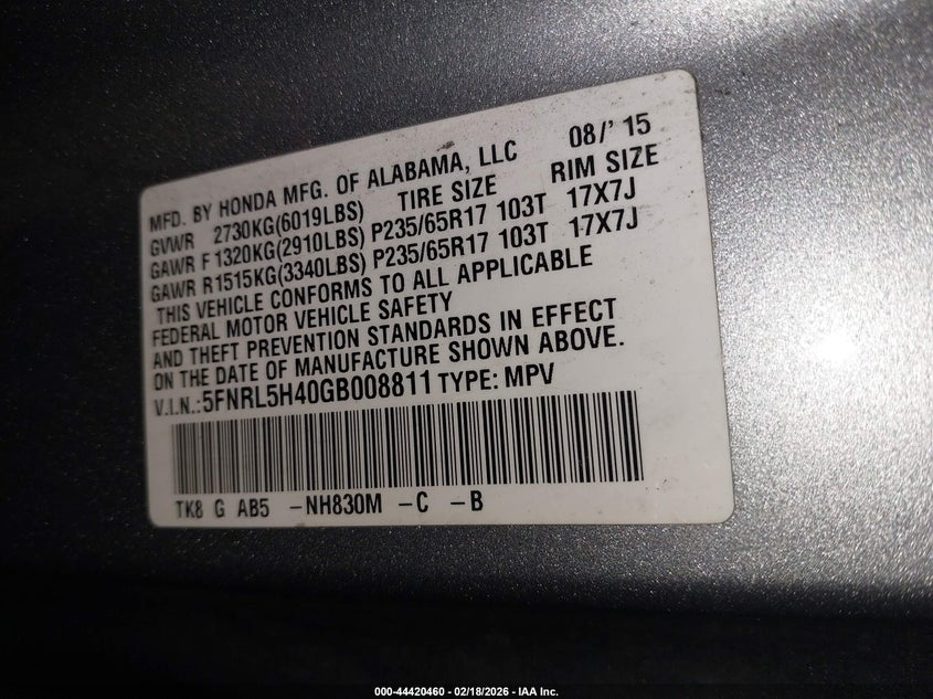 • 5FNRL5H40GB008811