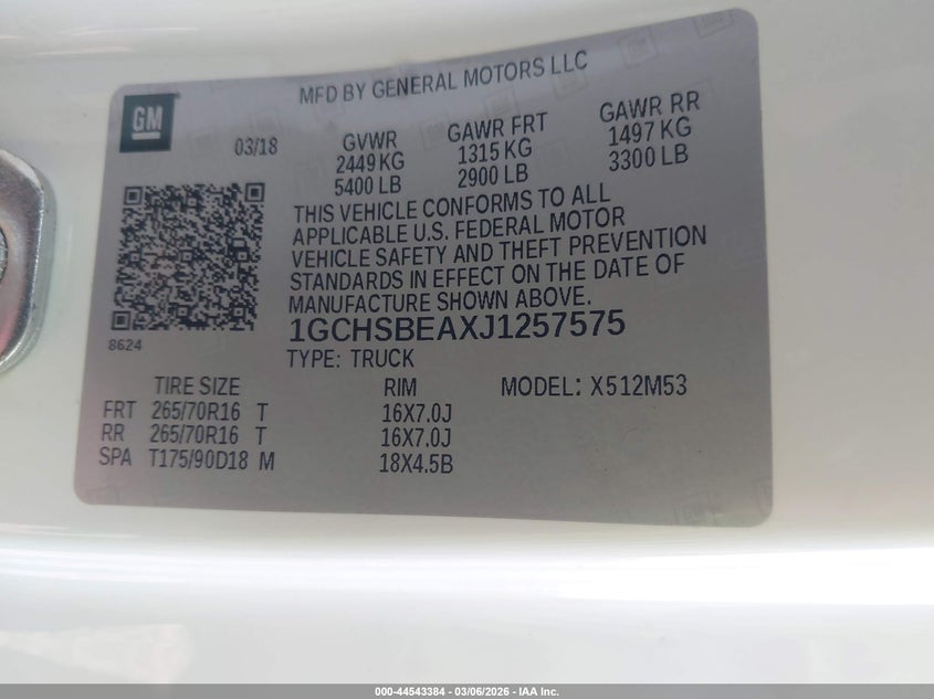 2018 CHEVROLET COLORADO WT for Sale in Gov Auctions Zone 4, None