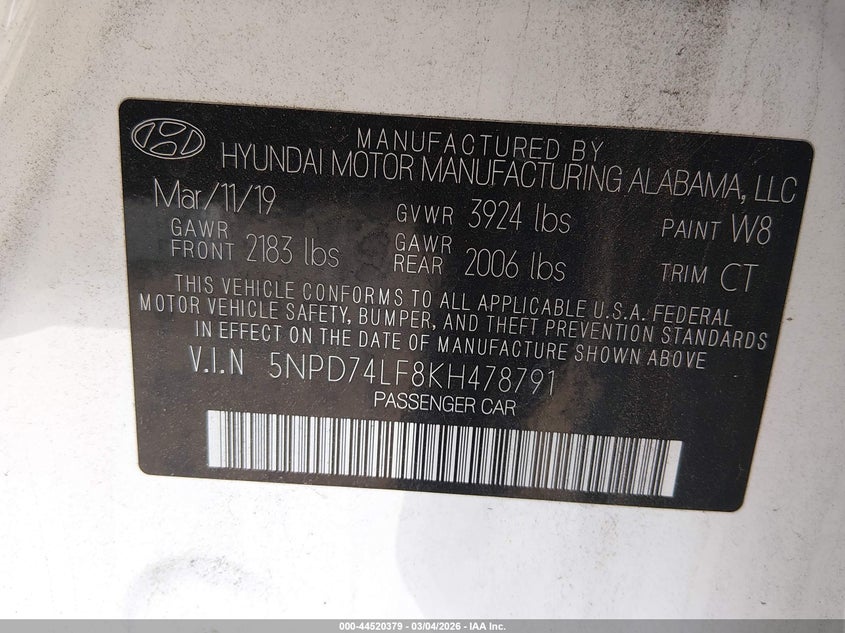 2019 HYUNDAI ELANTRA SE for Sale in Gov Auctions Zone 4, None