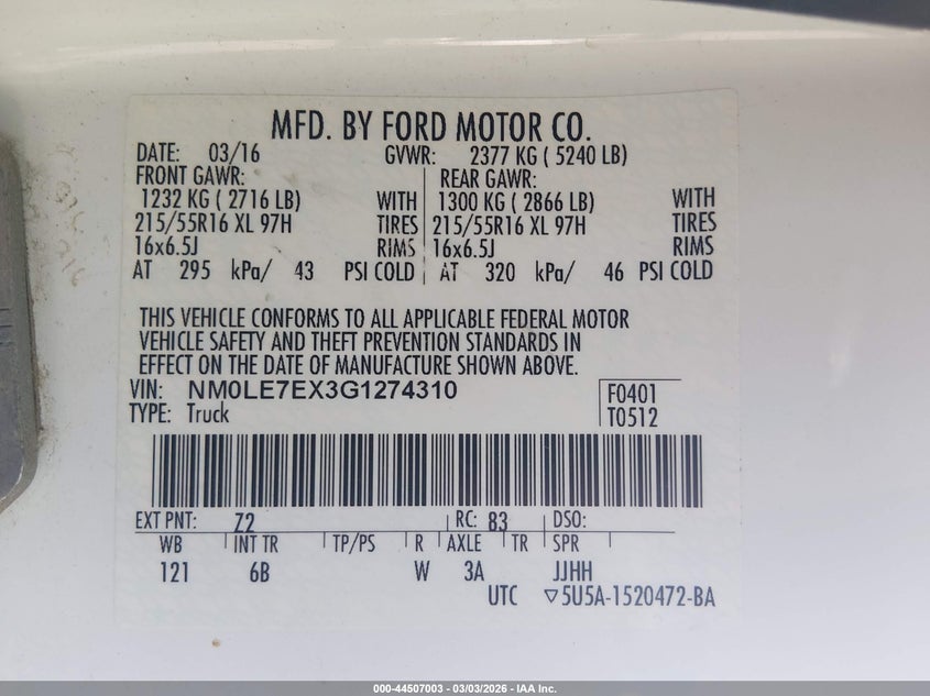 2016 FORD TRANSIT CONNECT XL for Sale in Gov Auctions Zone 4, None