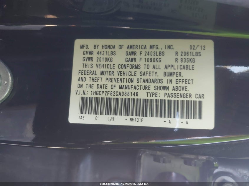 • 1HGCP2F82CA088146