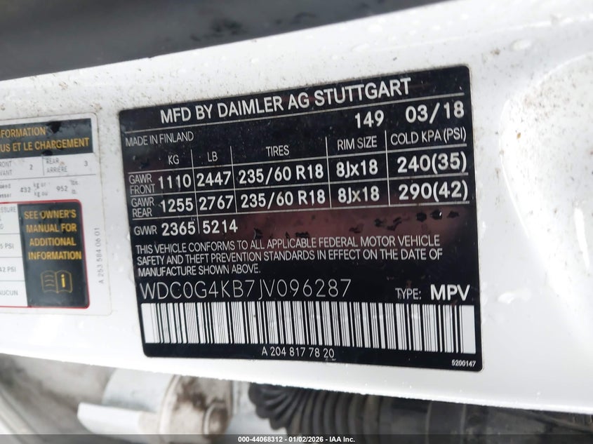• WDC0G4KB7JV096287