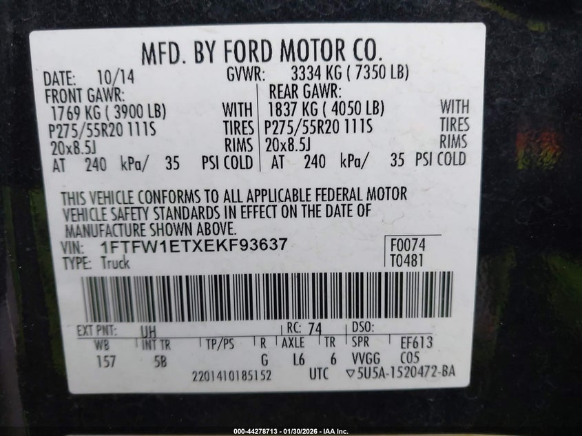 • 1FTFW1ETXEKF93637