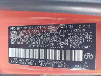 • JTDKDTB38C1003376
