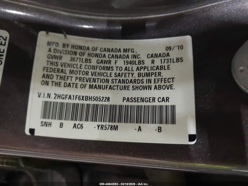 • 2HGFA1F6XBH505228