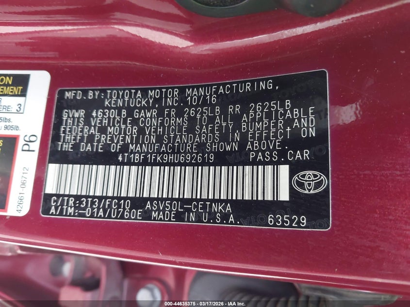 • 4T1BF1FK9HU692619