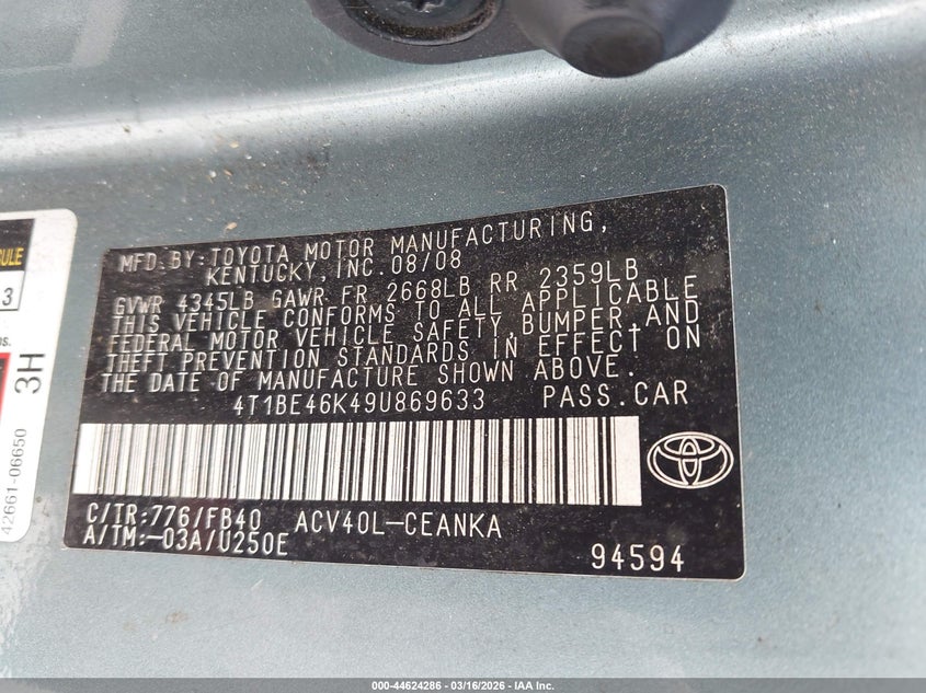 • 4T1BE46K49U869633