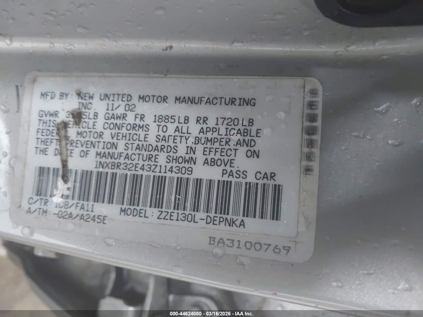 • 1NXBR32E43Z114309