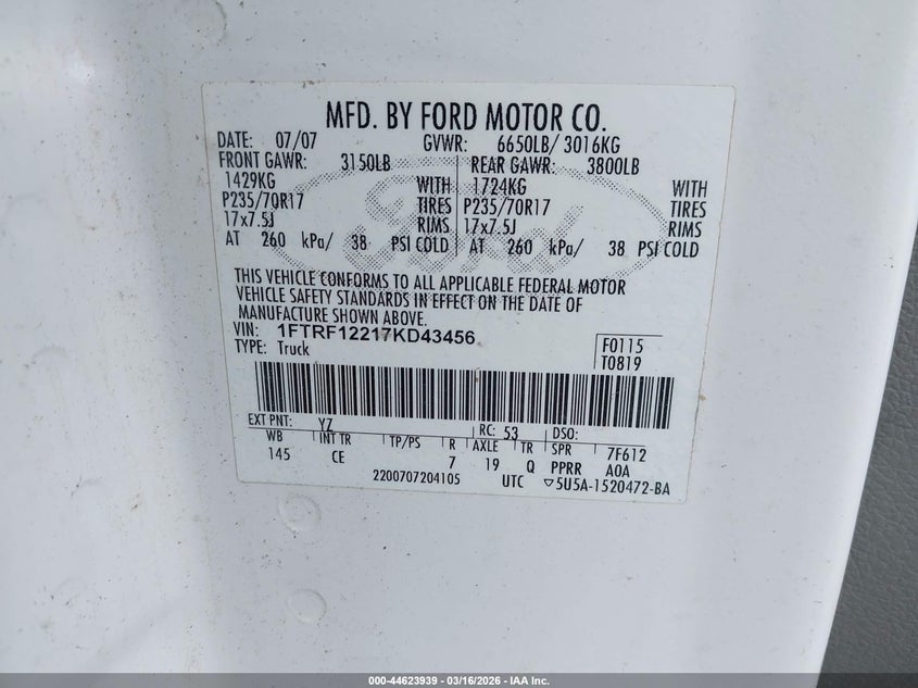 • 1FTRF12217KD43456