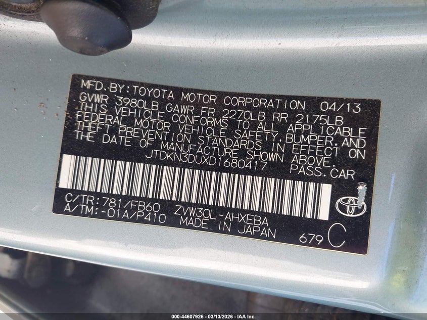 • JTDKN3DUXD1680417