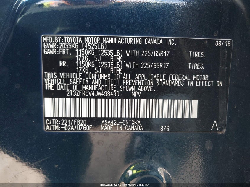 • 2T3ZFREV4JW498490