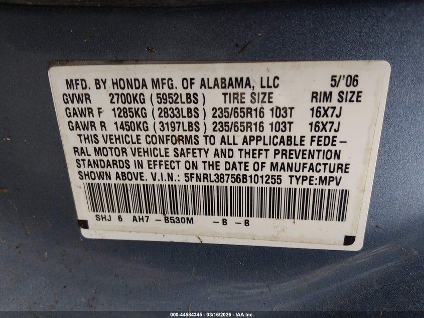 • 5FNRL38756B101255