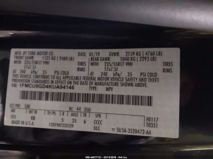• 1FMCU9GD4KUA94146