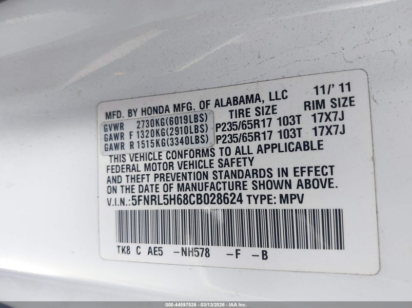 • 5FNRL5H68CB028624
