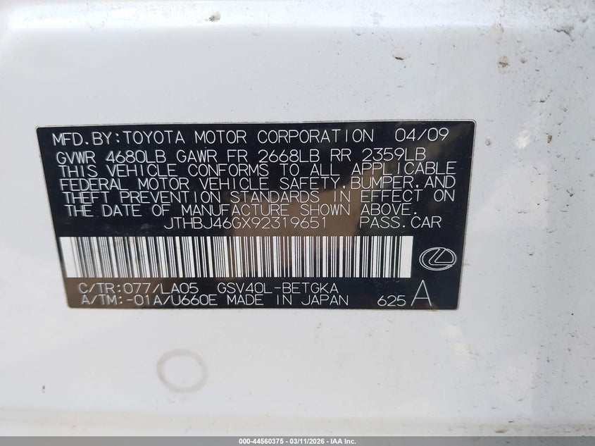 • JTHBJ46GX92319651