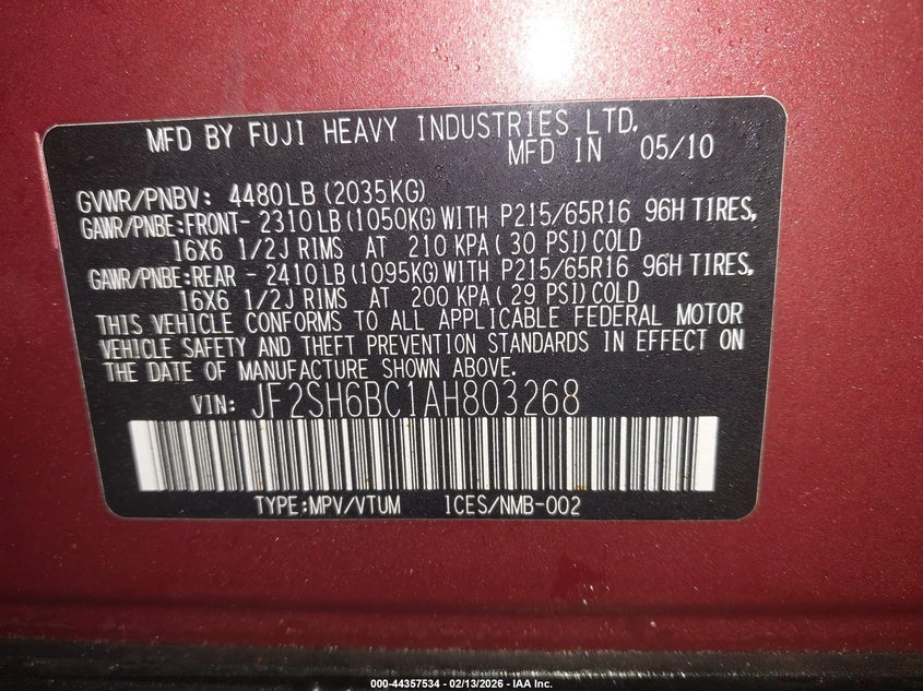 • JF2SH6BC1AH803268