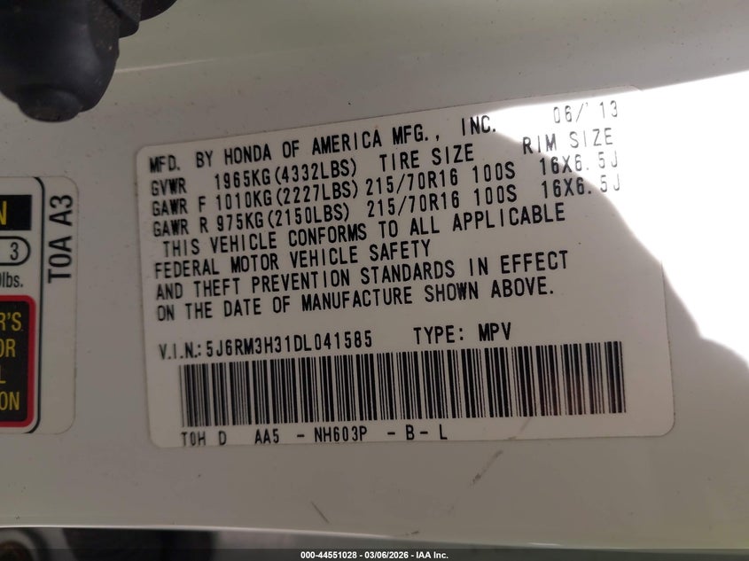 • 5J6RM3H31DL041585