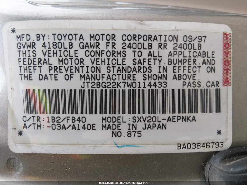 • JT2BG22K7W0114433