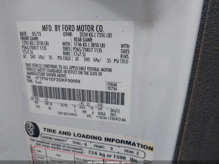 • 1FTFW1EF3DKF00059