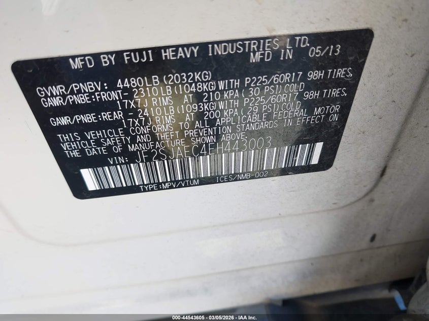 • JF2SJAEC4EH443003