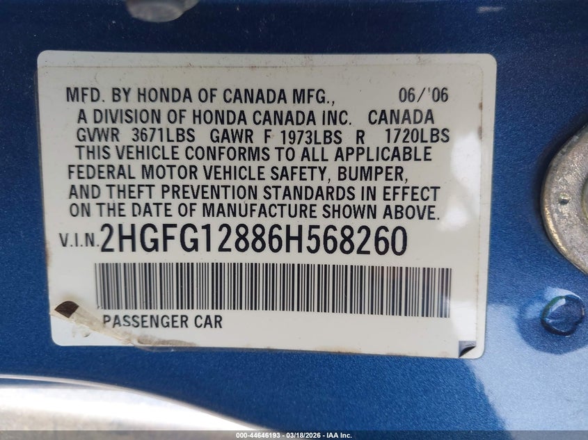 • 2HGFG12886H568260