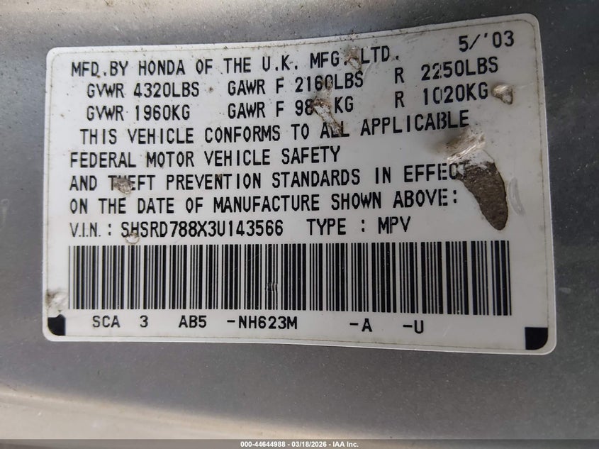 • SHSRD788X3U143566