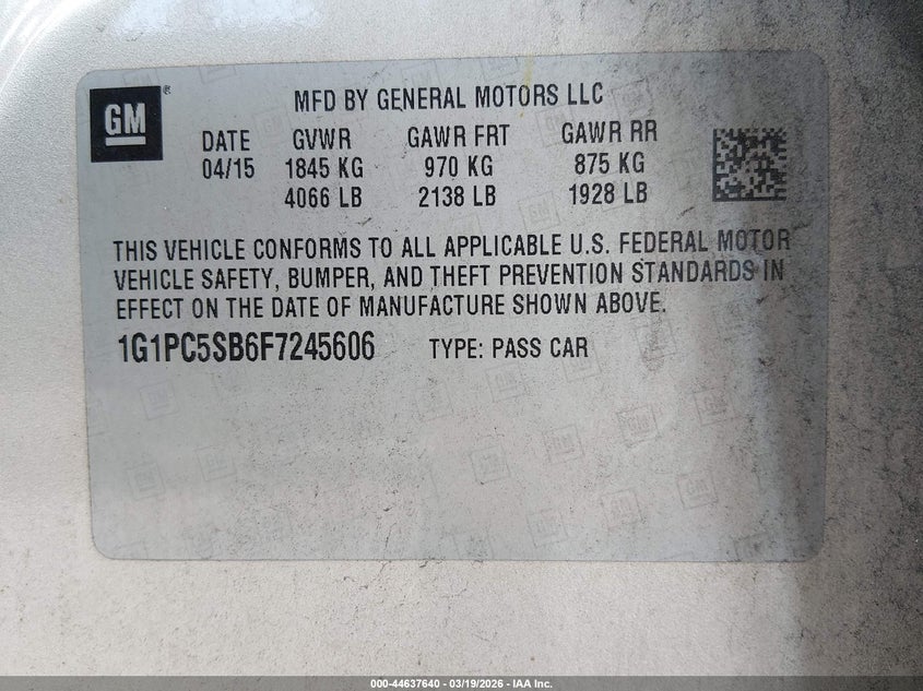 2015 CHEVROLET CRUZE 1LT AUTO for Sale in North Fort Myers, FL