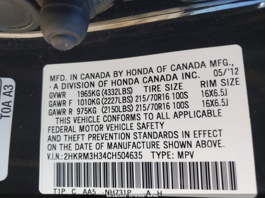 • 2HKRM3H34CH504635