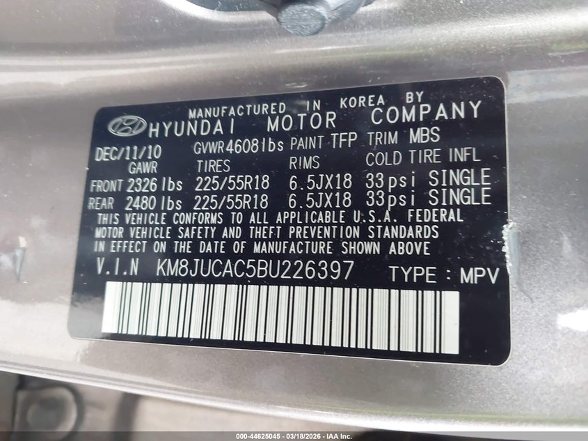• KM8JUCAC5BU226397
