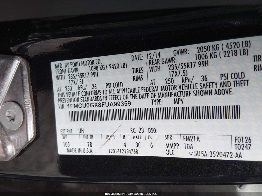 • 1FMCU0GX8FUA99359