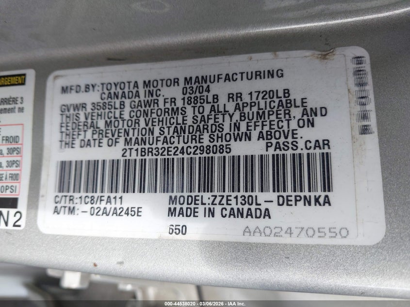 2004 TOYOTA COROLLA CE/LE/S for Sale in Lorain, OH