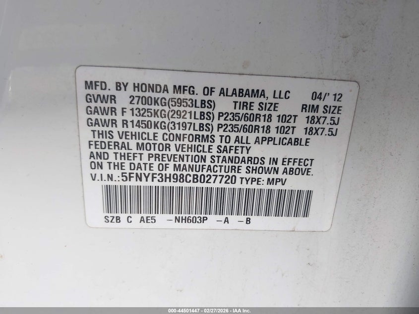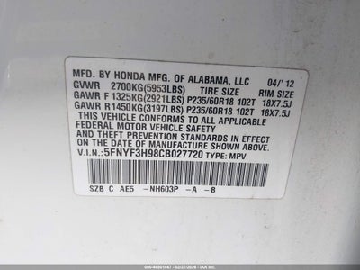 • 5FNYF3H98CB027720