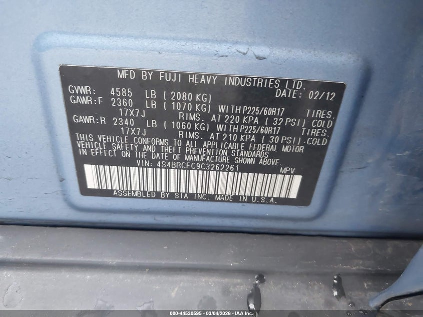 • 4S4BRCFC9C3262261