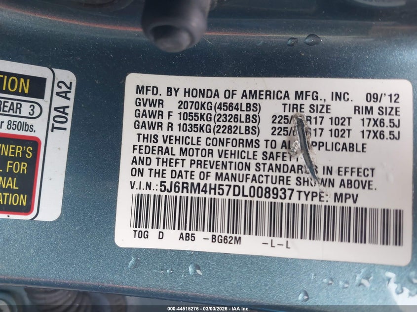 • 5J6RM4H57DL008937