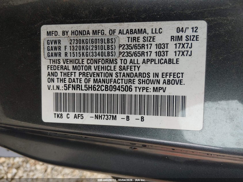 • 5FNRL5H62CB094506
