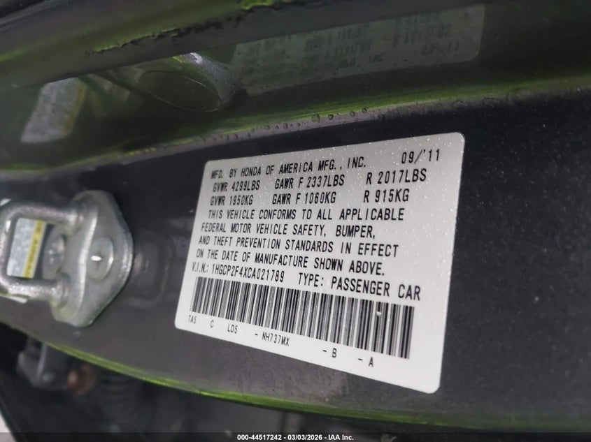 • 1HGCP2F4XCA021789