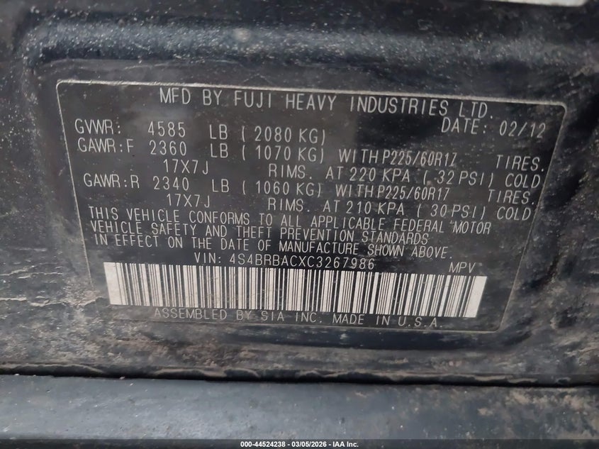 • 4S4BRBACXC3267986