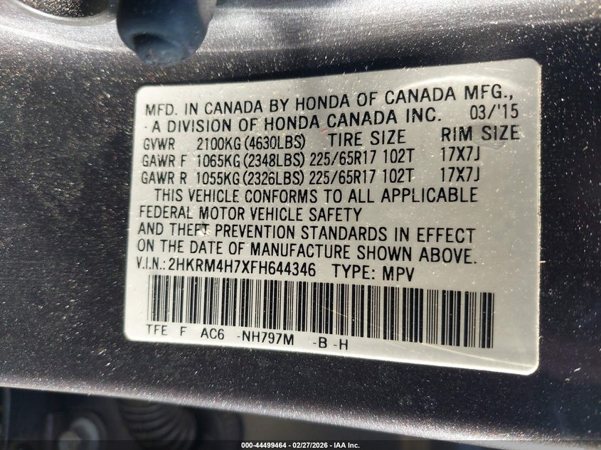 • 2HKRM4H7XFH644346