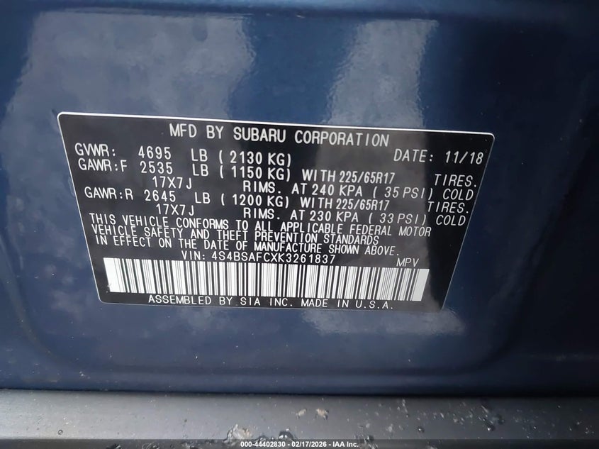 • 4S4BSAFCXK3261837