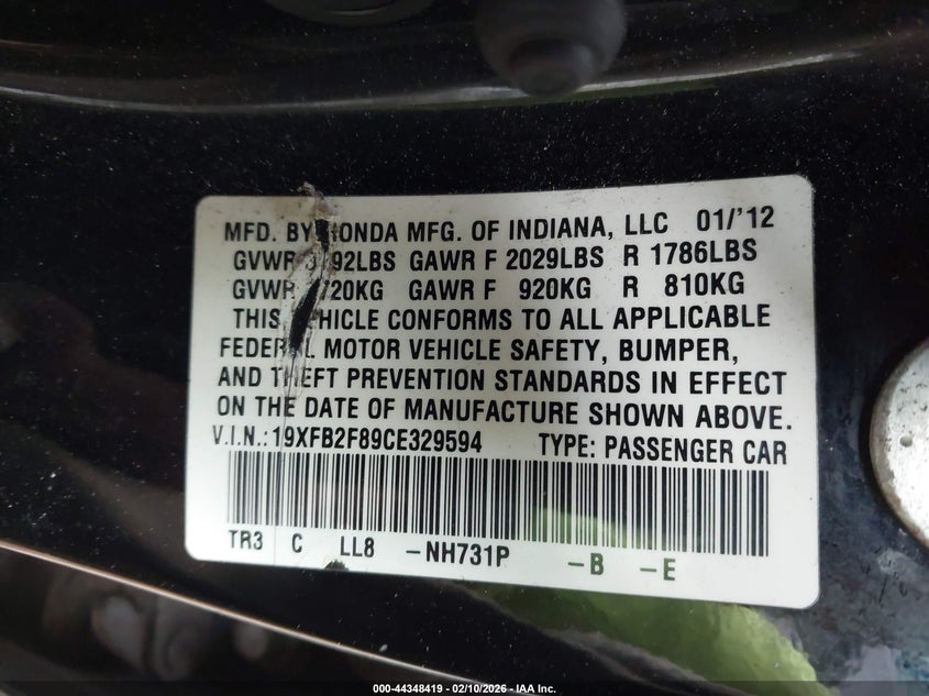 2012 HONDA CIVIC EX for Sale in Pittston, PA