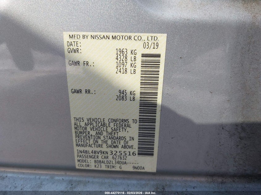 2019 NISSAN ALTIMA 2.5 S for Sale in Turnersville, NJ