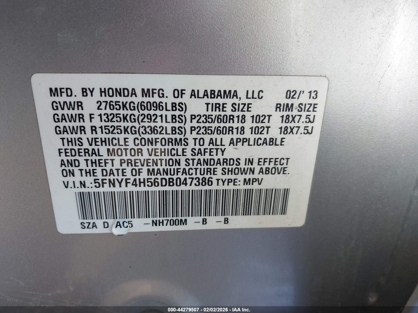 • 5FNYF4H56DB047386