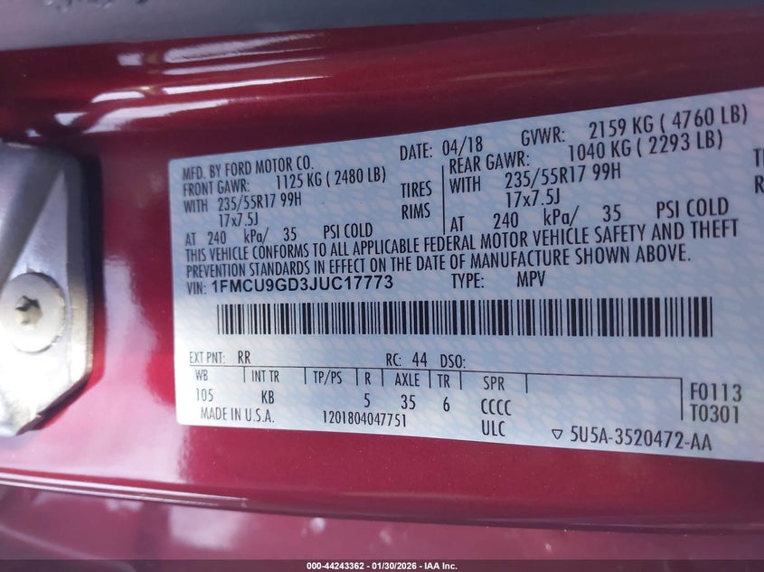 • 1FMCU9GD3JUC17773