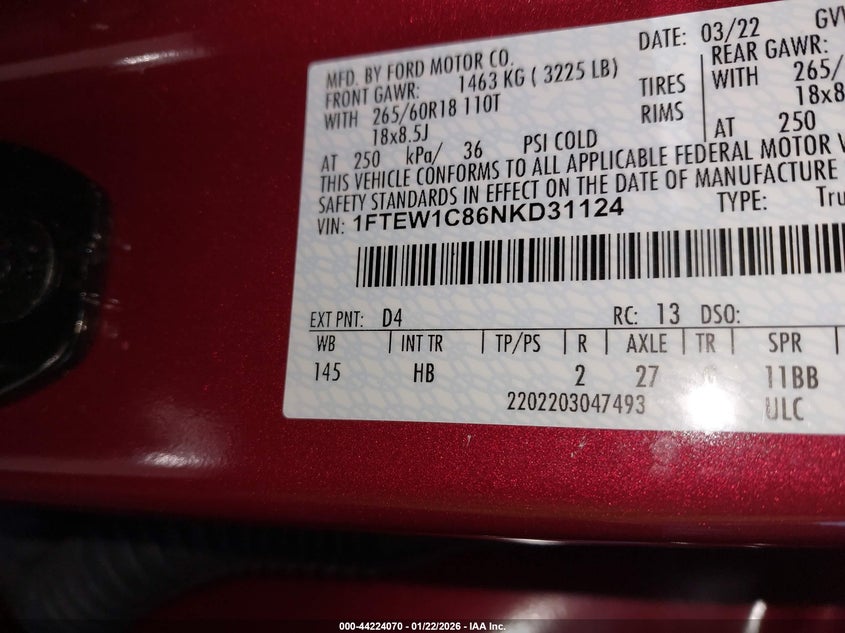 • 1FTEW1C86NKD31124