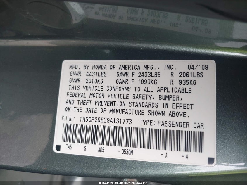 • 1HGCP26839A131773